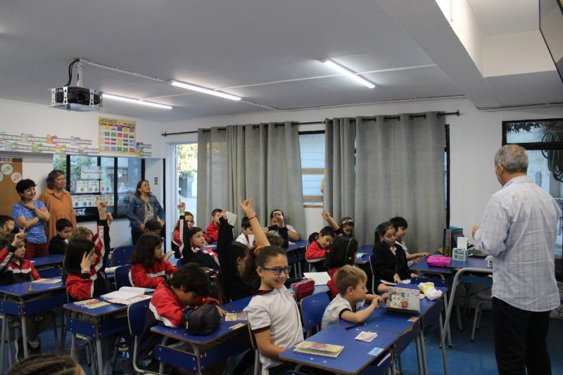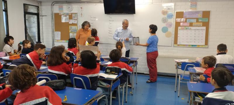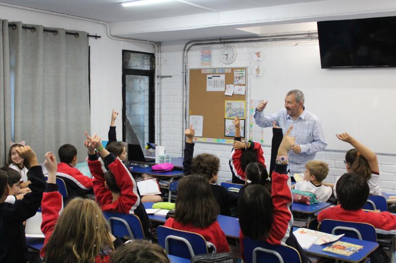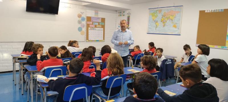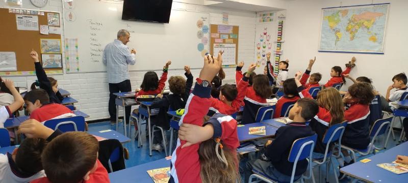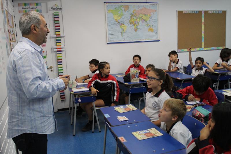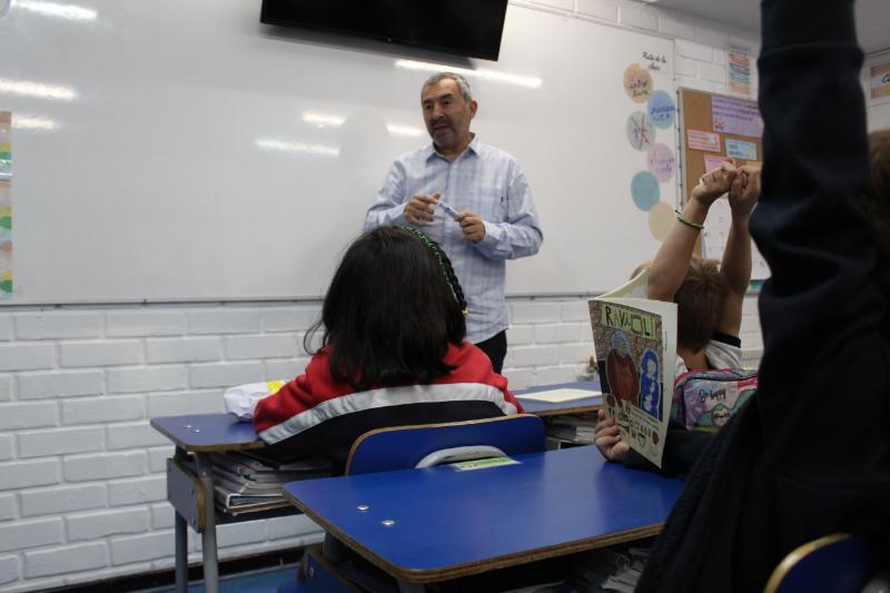 El viernes 22 de marzo, recibimos a Marcelo Simonetti, destacado escritor de libros infantiles, quien fue explicando al curso el proceso creador que vive al concebir sus obras de una manera cálida y entretenida. Asimismo, desarrolló una dinámica para que cada niño/a construyera su propio animal imaginario y los instó a que los enriquecieran con distintas características físicas y psicológicas. El libro que Marcelo presentó fue Ravioli que trata con mucha dulzura la importancia de mantener vivos los recuerdos. En la parte final del libro, se presenta una receta de los Raviolis de la abuela. Invitamos a todos/as los padres y madres de 3º Básico a realizar junto a sus hijos esta receta.