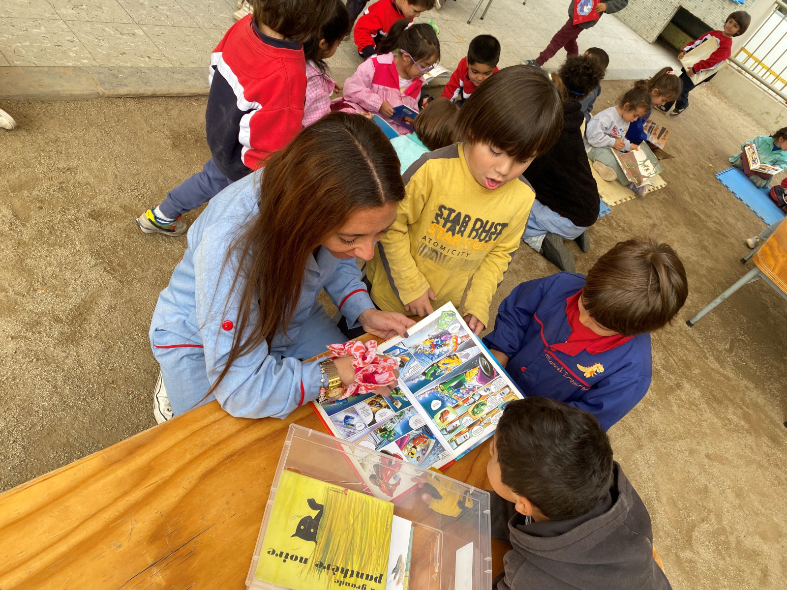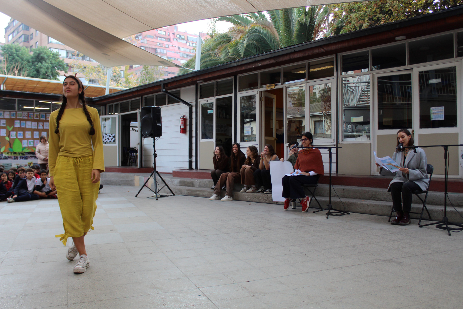 Luego, durante toda la jornada escolar los cursos desde 3º Básico en adelante, expusieron sobre el libro que leyeron en marzo o abril correspondiente al Plan Lector. Pudimos presenciar teatrillos kamishibai, juegos interactivos, representaciones, entre otros, en los patios de Básica y Media.