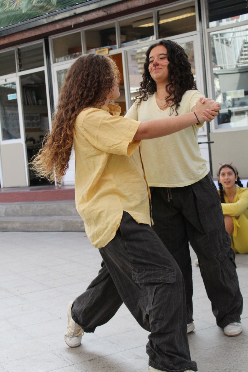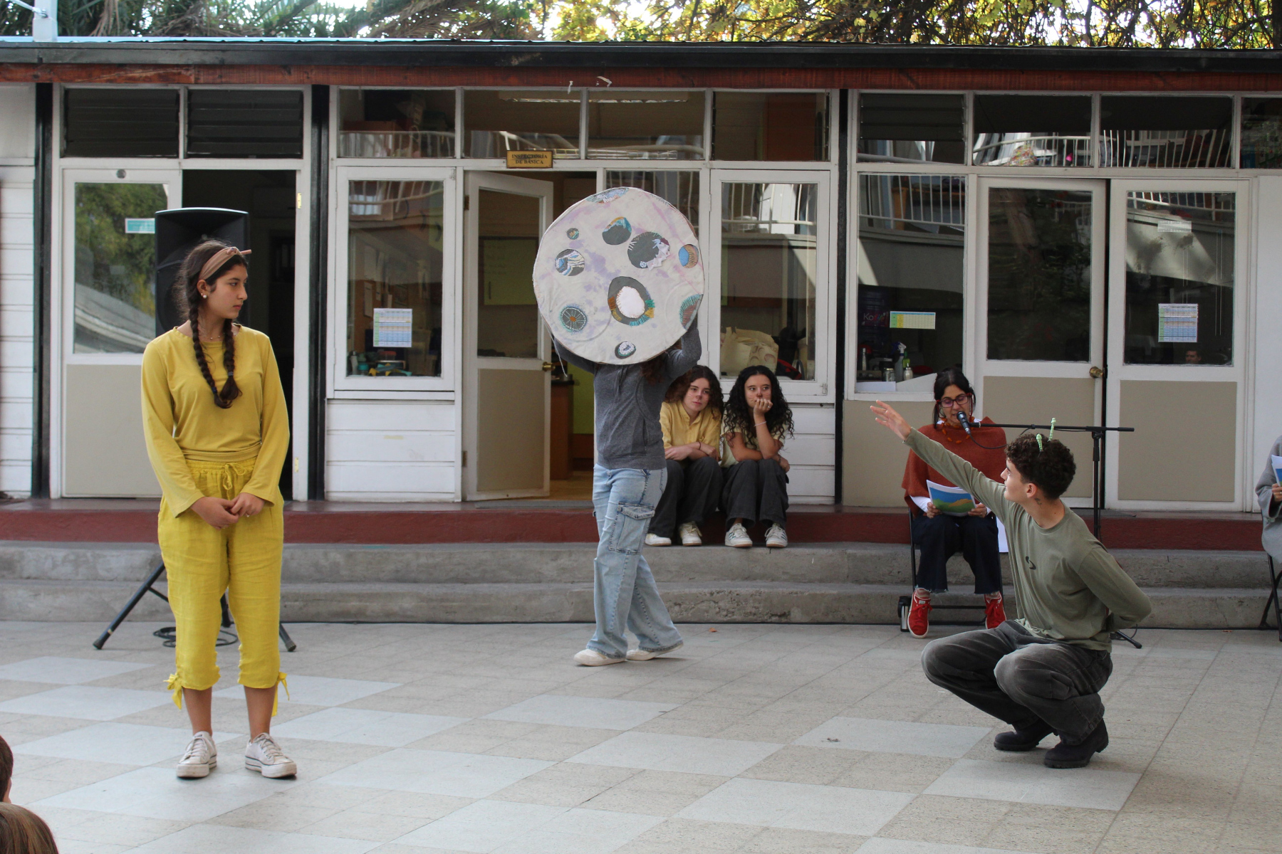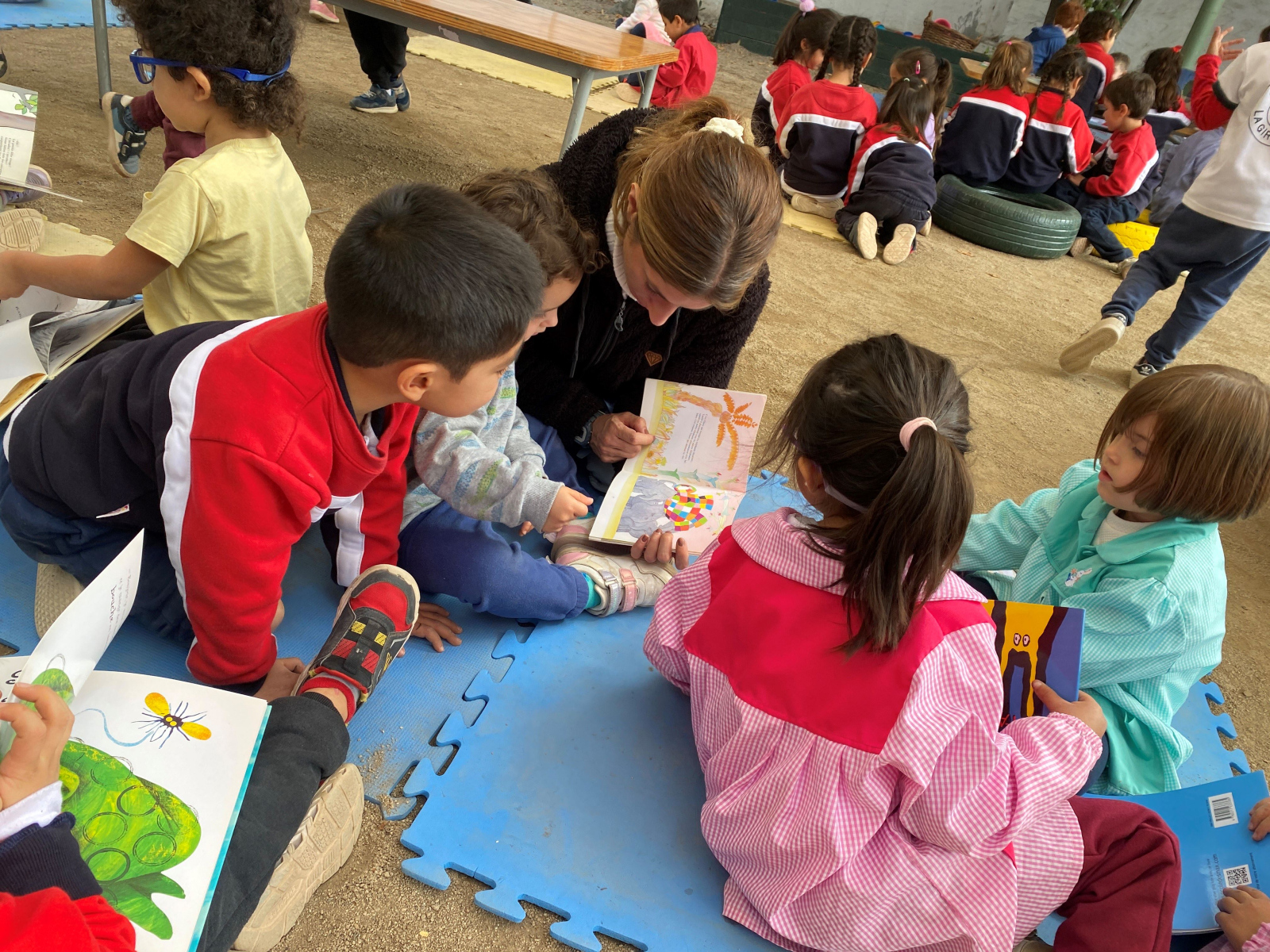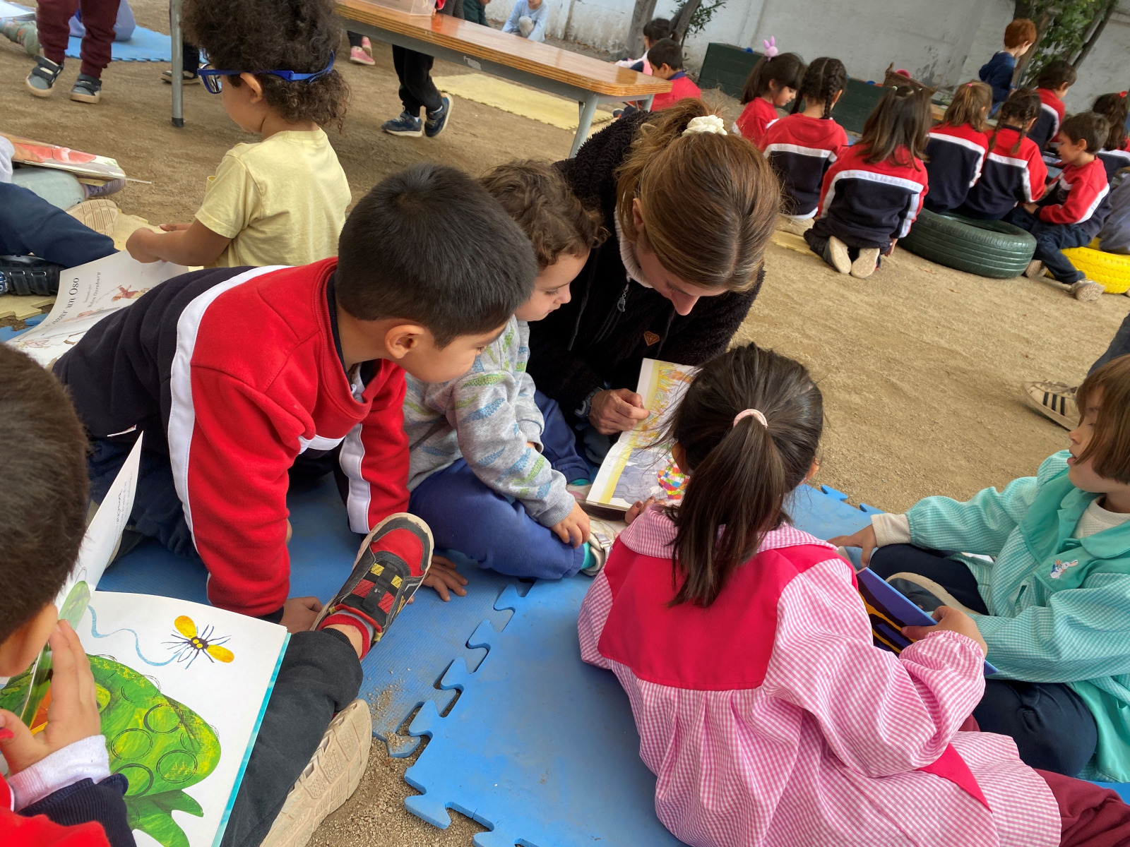 El jueves 24 de abril continuó la celebración en el patio de la campana con nuestra Directora, Mme. Bárbara Albagly y Mme. Mónica Sadá quienes narraron el cuento “La jirafa no puede bailar” de Giles Andreas a los cursos de 1° a 6° Básico los cuales escucharon atentamente. La narración fue acompañada por los estudiantes de 4º Medio: Dominga Erazo, Renata Mahnke, Josefa Díaz, Simona Vera, Amelia Corvalán, Elisa Montes, Carmen Santa-Cruz, Manuel Oyarzún, Ágata Jordan y Arturo Rivera quienes representaron teatralmente el cuento.