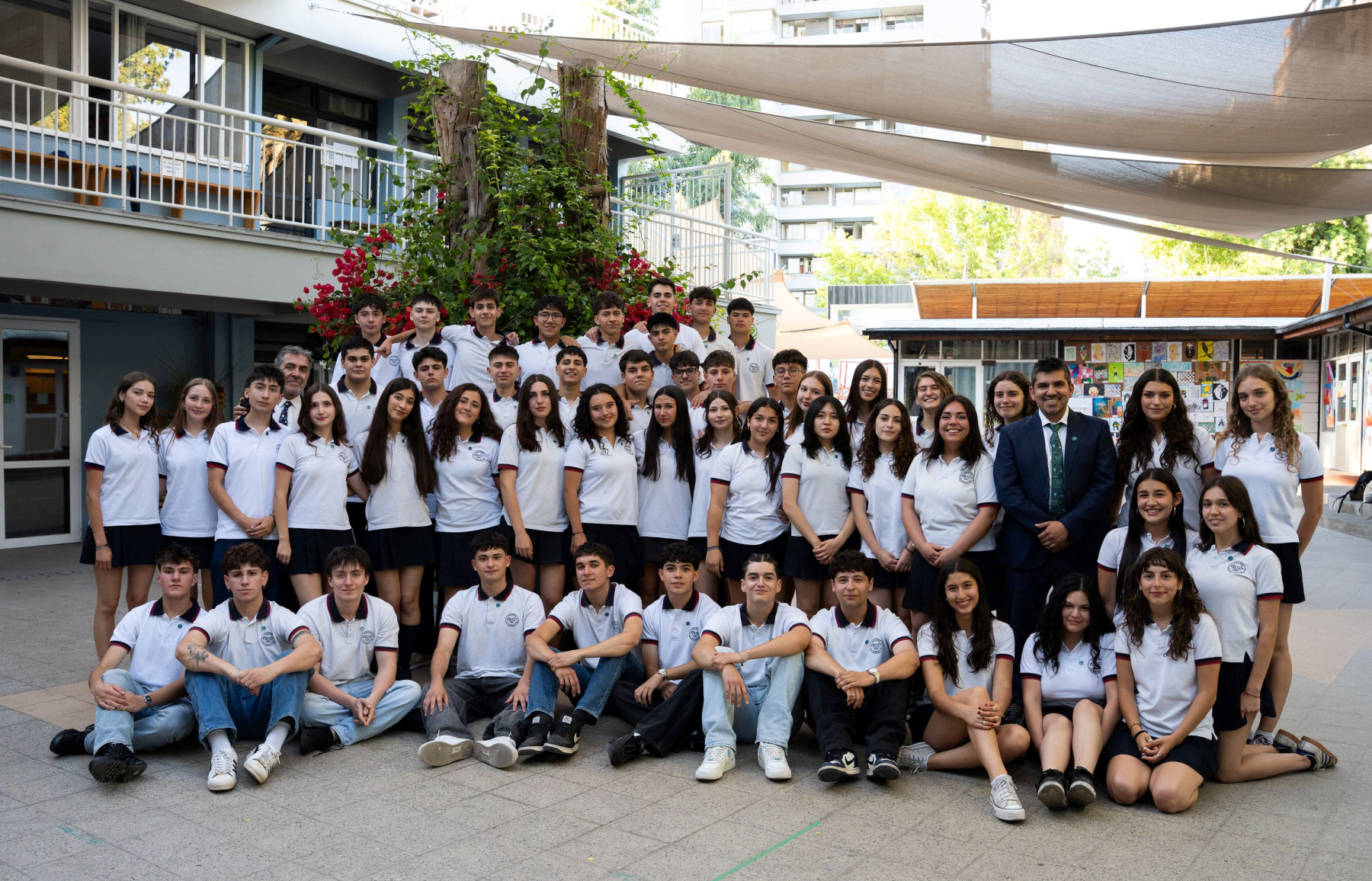 Los numerosos recuerdos crecerán entonces, delicados como la blanca buganvilia que nos regalaron para iluminar la historia del colegio. Asimismo los más diversos desafíos, las fortalezas, los recios caracteres, las frustraciones que los forjaron y los distintos logros que vivieron durante todos estos años harán de peldaño para lo que viene.