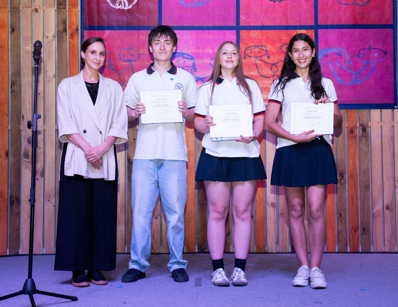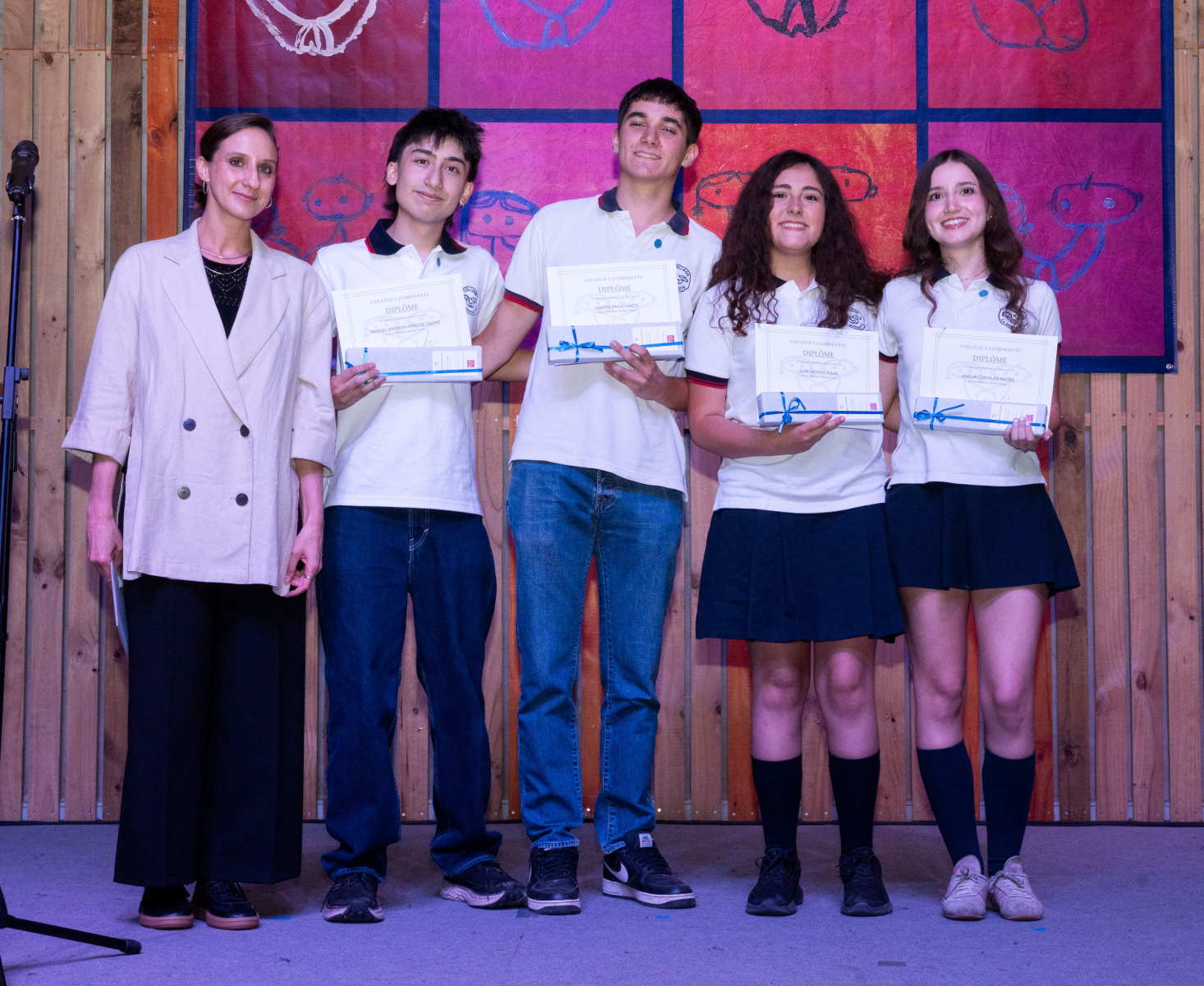 Señor Presidente de la Sociedad Educacional La Girouette, M. Félix Albagly Giroux; Sr. Rafael Albagly Prieto, Gerente General ; Mme. Mónica Sadá, Directora Académica, Mme. Carolina Jirón, Subdirectora de Básica y Jardines, Mme. Karina Pimstein, Encargada de Convivencia escolar; Estimados profesores, inspectores y auxiliares. Estimadas familias …