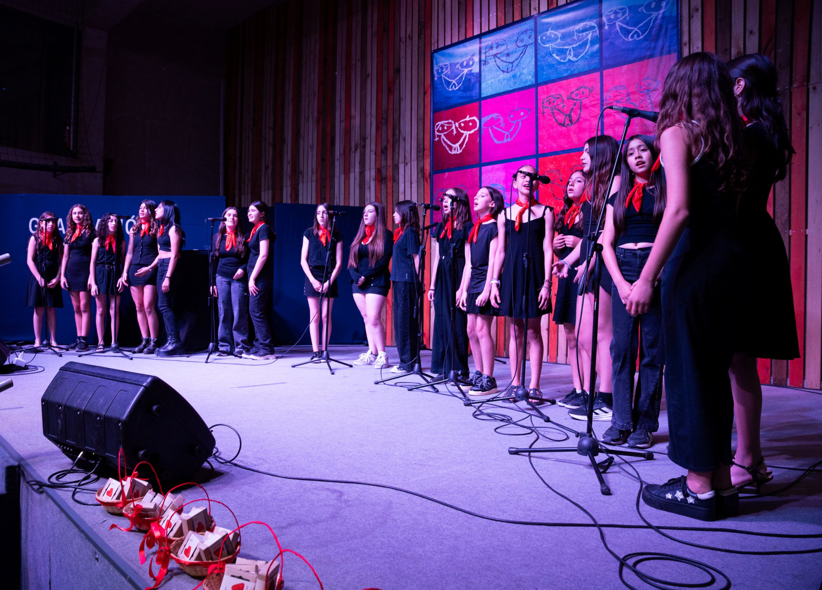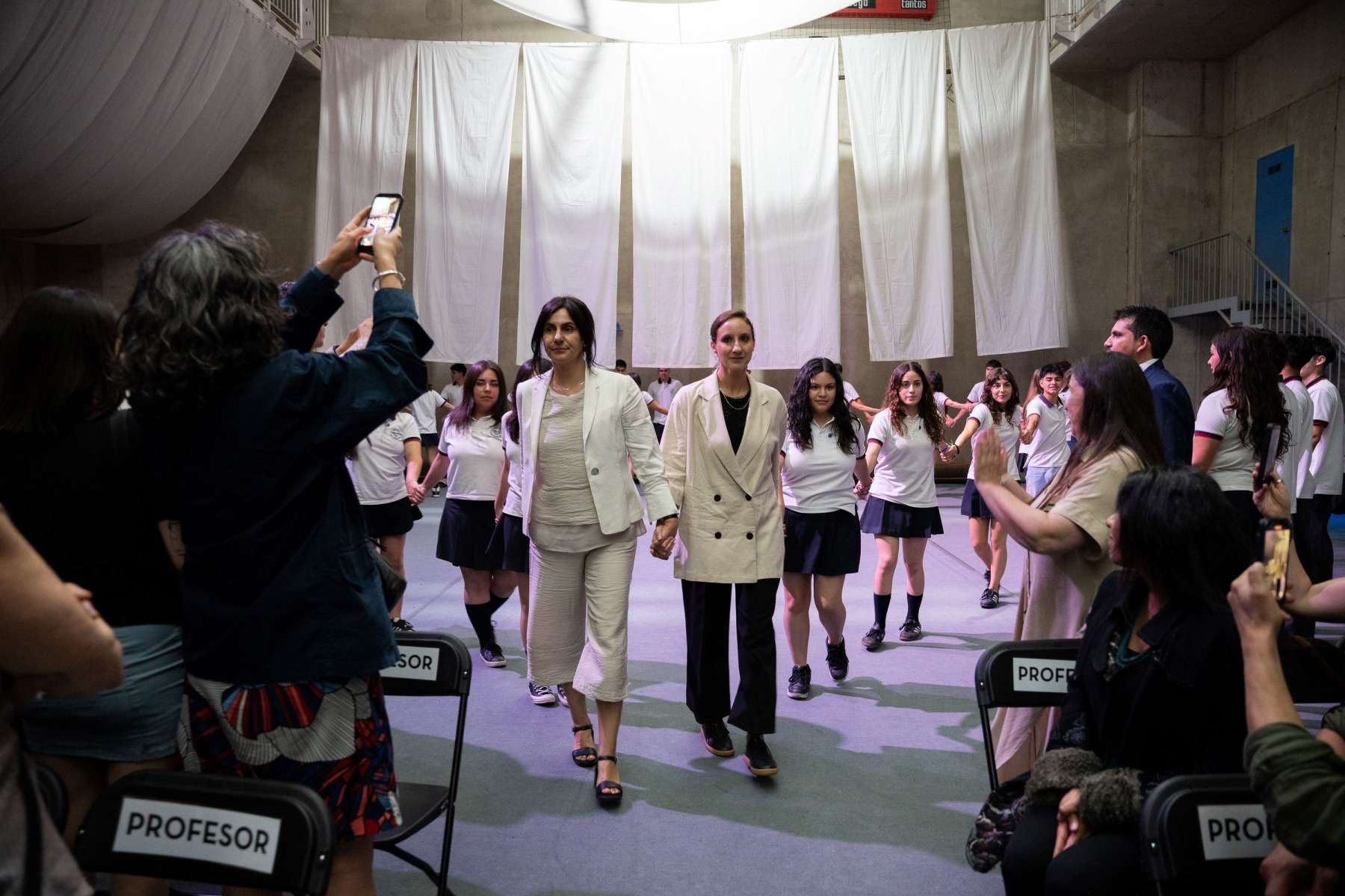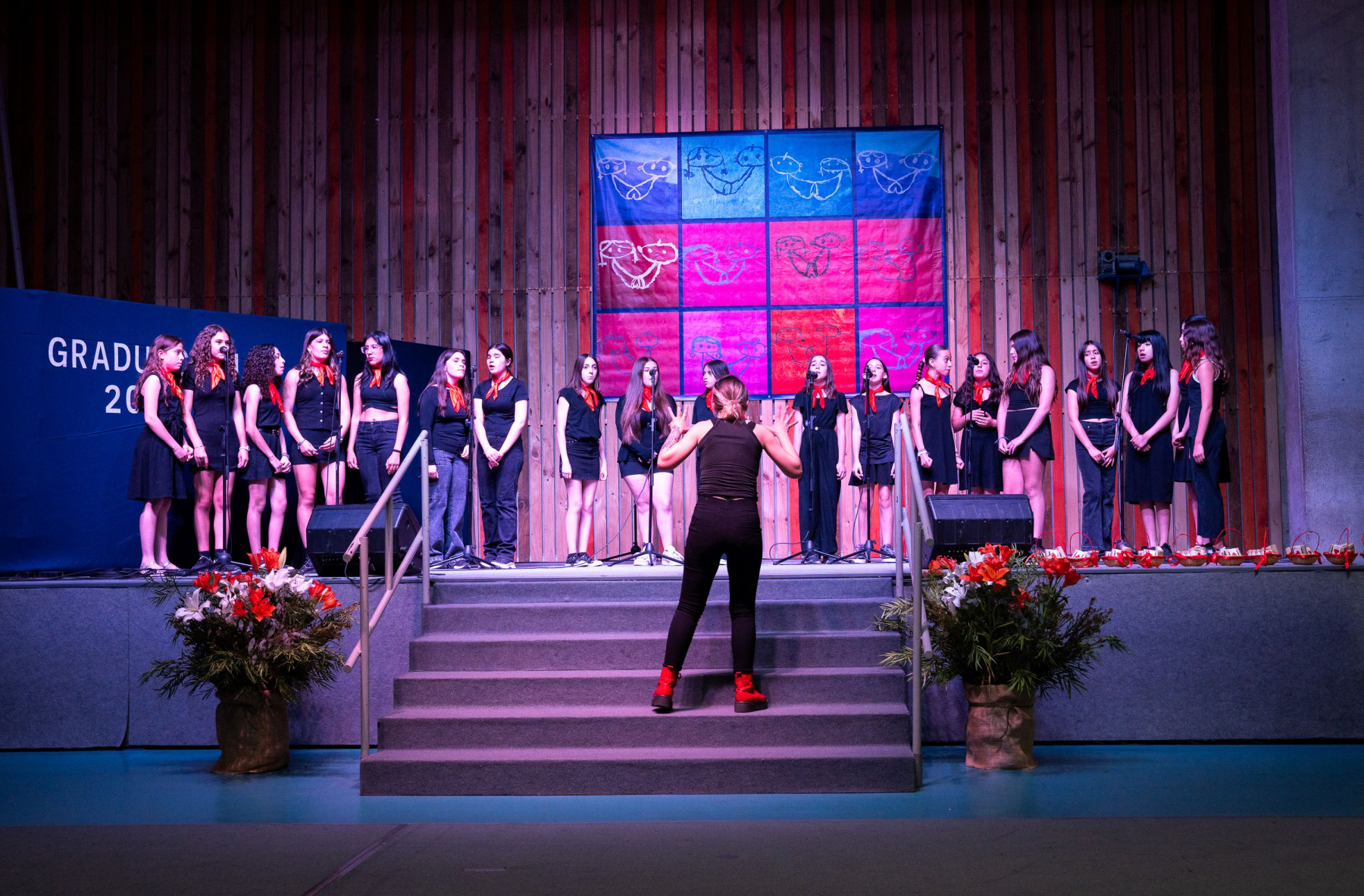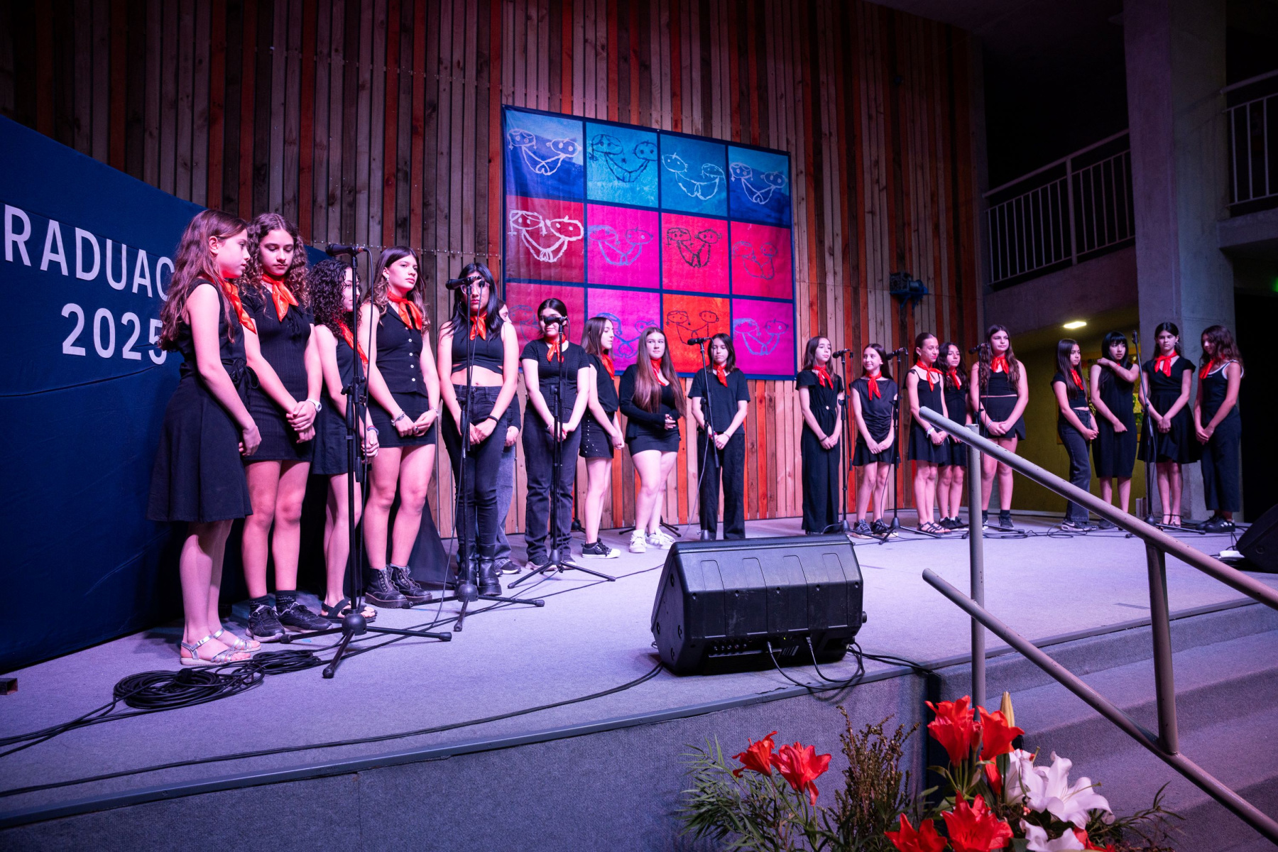 Un coro de estudiantes de 1° Básico a 3° Medio, cantó el tema “Cantares”, poema de Antonio Machado y musicalizado por Joan Manuel Serrat dirigidas por su profesora de música.