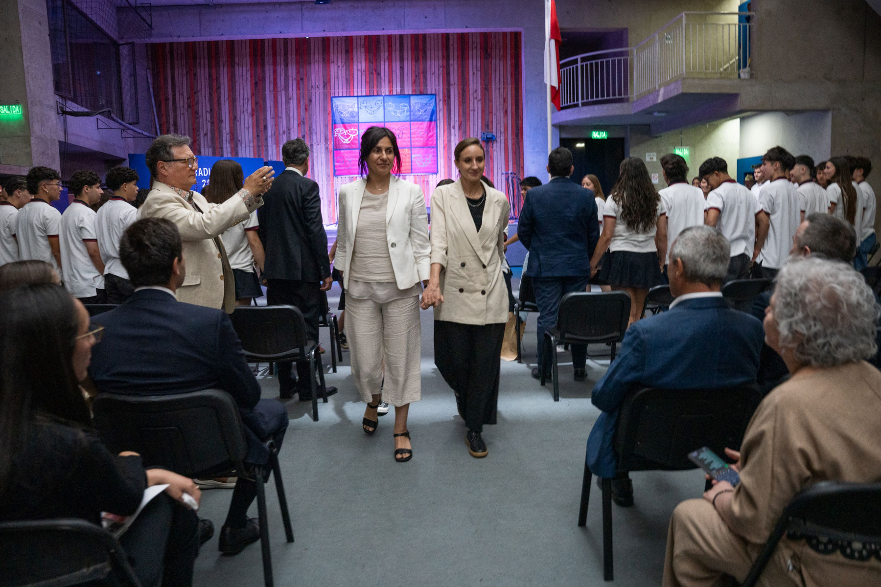 No se olviden de lo que fueron en estos patios y salas, junto a los distintos profesores que tan graciosa y amorosamente homenajearon al replicar su vestuario y sus gestos, y que hoy los acompañan, en esta despedida.