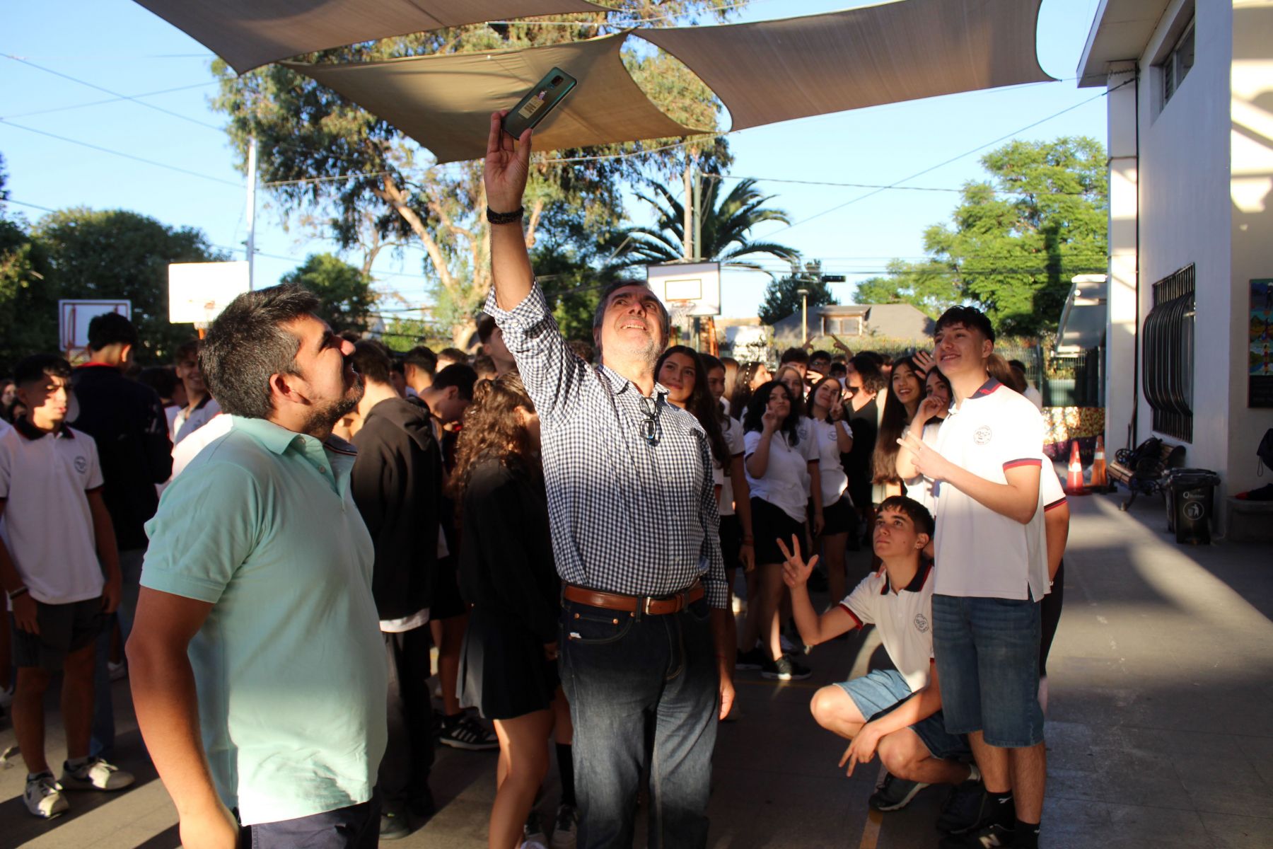 En otro plano, como todos los años, nuestro colegio está permanentemente realizando esfuerzos para estar a la vanguardia no sólo en las ideas y proyectos académicos, sino también en un equipamiento que acompañe estas iniciativas pedagógicas. Este año hemos realizado dos proyectos largamente esperados. Comenzamos el año con una gran noticia en el ámbito tecnológico. Durante el verano, realizamos una importante inversión para mejorar la red de internet del colegio. Hoy día, cada sala de clases, así como oficinas y salas de reuniones, cuentan con puntos de acceso Wi-Fi de última generación, para lo cual renovamos completamente todo el cableado del colegio y reorganizamos toda la red para garantizar una conexión estable y de alta velocidad, lo que permitirá a nuestros profesores integrar más herramientas digitales a sus clases y mejorar las experiencias de aprendizaje. Es importante señalar, en el contexto del cuidado de la salud y el bienestar de nuestros estudiantes, que esta red ha sido diseñada exclusivamente para apoyar el trabajo de los profesores y del personal administrativo del colegio, por lo que su uso se limitará únicamente a estos fines, preservando que vuestra estadía en el colegio no contribuya a las adicciones a las redes sociales y juegos en línea que tanto daño hacen a nuestros niños, niñas y adolescentes. Otra gran noticia es que, tal como lo anticipamos el año pasado, hemos dado un paso muy importante en nuestro compromiso con el medioambiente y la sostenibilidad al instalar en nuestro colegio un sistema fotovoltaico, con la instalación de una gran cantidad de paneles solares, lo que nos permitirá generar nuestra propia energía a partir del sol. Gracias a esta innovación, cubriremos más del 50% del consumo anual de electricidad, reduciendo al mismo tiempo la huella de carbono de nuestra institución. Para que se hagan una idea, esto equivale a haber evitado las emisiones de CO2 de un auto que recorre 86.000 kilómetros. Con este proyecto, no solo cuidamos el planeta, sino que también damos un ejemplo concreto de cómo la tecnología y la conciencia ambiental pueden ir de la mano para construir un mundo mejor.
