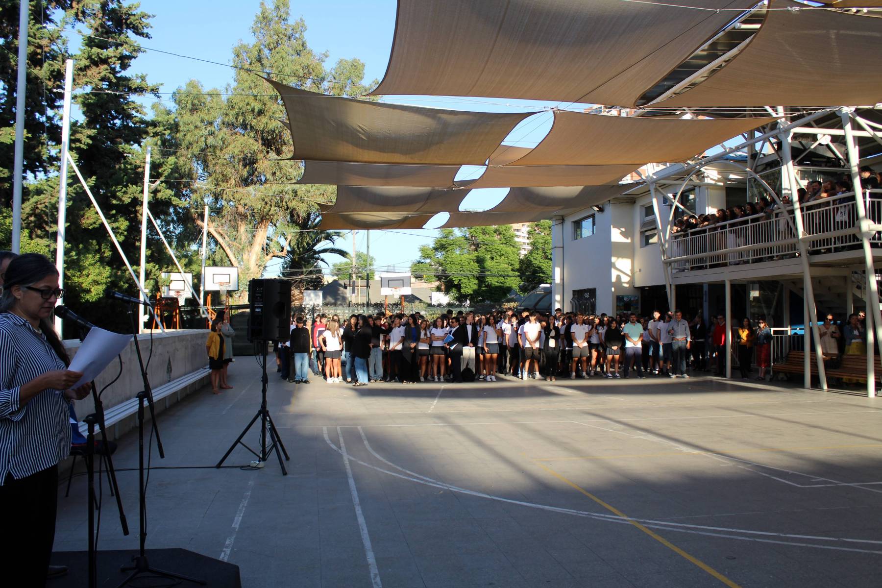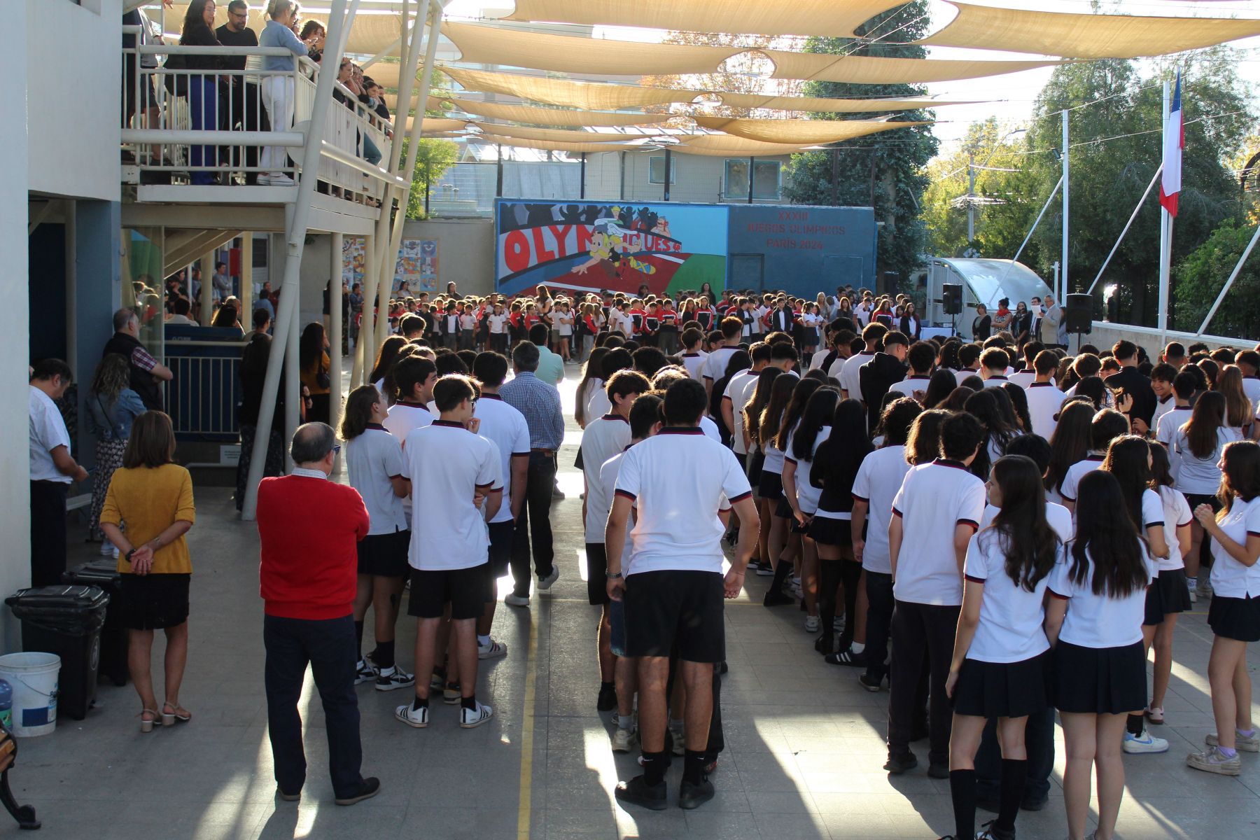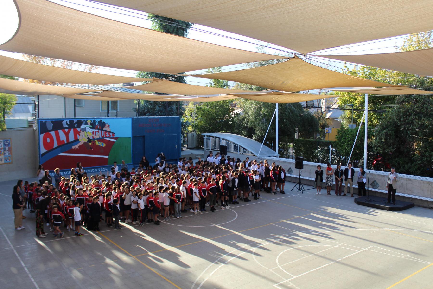 El primer día del año escolar nos provoca a todos mucha emoción y esperanza frente a lo que vendrá, con sus certezas e incertidumbres. Con todo, hoy celebramos que estaremos juntos un año más en este espacio que es vuestro colegio, en que sus profesores, inspectores, auxiliares y directores velaremos para que aprendan sobre los distintos saberes, para que compartan, den lo mejor de sí y sean acompañados con cariño, desafiándolos a actuar con responsabilidad, esfuerzo, curiosidad, perseverancia y creatividad, aportando tanto a vuestro desarrollo individual como al colectivo. Frente a un mundo convulsionado, que en ciertas regiones aún no encuentra la paz y donde el diálogo no siempre logra ser la herramienta que resuelve los conflictos, el colegio seguirá persistiendo en fortalecer el respeto, la inclusión, la comunicación y la excelencia en su formación académica y valórica de sus estudiantes, con el fin de contribuir a una sociedad más amorosa y en sincronía con la naturaleza. Es en este contexto que hoy quiero comenzar destacando la formación integral que el colegio desea entregar a sus estudiantes y que este año recién pasado se reflejó notablemente en vuestros compañeros egresados el 2024 y en su consiguiente rendición de la prueba PAES de admisión a la educación universitaria. Como todos sabemos, nuestro colegio obtuvo el sexto lugar a nivel nacional en el promedio de la prueba de lenguaje y de matemática, pero además obtuvimos el primer lugar a nivel nacional en la prueba de lenguaje. En el mismo ámbito, nuestro estudiante de cuarto medio, Diego Stecher, ingresó a la carrera de Derecho de la Universidad de Chile con el más alto puntaje de todo el país, por lo que fue reconocido y felicitado por esta Universidad, haciéndolo merecedor a una beca para realizar sus estudios durante toda su carrera. Todos estos resultados, que sin duda nos alegran enormemente, nos parecen muy relevantes porque dan cuenta de que los estudiantes del colegio que asumen sus estudios con responsabilidad obtienen grandes logros y a través de sus estudios pueden ser un aporte en distintas áreas a esa sociedad más amorosa que citábamos anteriormente. Y tal como le decimos a cada familia que postula al colegio, lo que más nos enorgullece cuando obtenemos resultados de esta envergadura, es lograrlos con todo el grupo de estudiantes de cuartos medios, sin dejar a nadie en el camino por bajos rendimientos, donde el enfoque de la verdadera inclusión se hace realidad. Y el otro aspecto que nos alegra enormemente también es que la gran mayoría de los estudiantes que exhiben estos altos promedios de notas, lo hacen, además, sin dejar de hacer deporte o música y participando en muchas de las actividades extra programáticas que el colegio les ofrece. Por lo anterior quiero felicitar a todos los profesores del colegio, desde Petit Jardin a Cuarto Medio, que dan lo mejor de sí para entregar sus conocimientos y la importante formación valórica que caracteriza a nuestros estudiantes. Hoy hemos invitado especialmente a la generación de cuartos medios 2024 para que todos sus compañeros menores y sus profesores los feliciten, deseándoles mucho éxito y felicidad para su futuro personal y profesional. Luego de ello, al término de esta ceremonia, nos reuniremos en el comedor en torno a un desayuno que le ofrecemos a todos los estudiantes que se destacan en cualquier ámbito de su quehacer escolar.