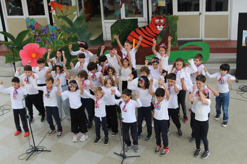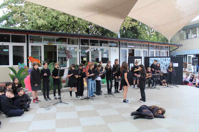 En el ciclo de Básica, los alumnos/as presentaron un espectáculo variado desde canciones de bienvenida cantada por el 1º Básico, hasta canciones originarias del Congo “Ngando”por 2º Básico quienes Simbolizaron un cocodrilo o “ngando” en idioma Swailli. La Martinica siendo parte de los “Territoires Outre Mer”, donde se habla francés, ofrece un ritmo musical alegre y dinámico como la beguine. El 3º y el 6º Básico retomaron las canciones: “Ba nwen an tibo” (dame un beso) y “Vive le Douanier Rousseau” del grupo Kassav. 6º Básico hizo referencia al pintor y a su especial representación de la naturaleza, resaltando lo exuberante y lo exótico de estos lugares.