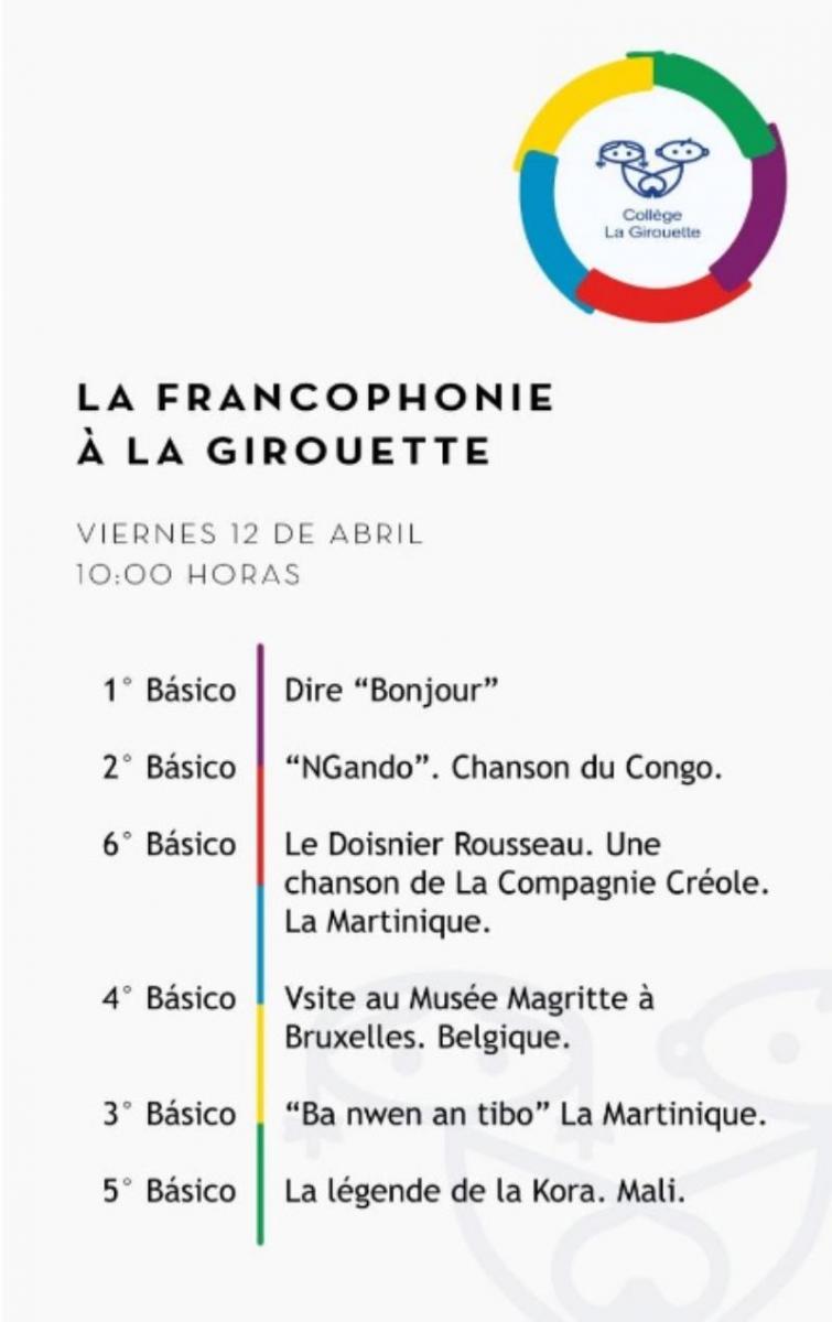 Como todos los años, nuestro colegio celebra el día Mundial de la Francofonía, evento multicultural que cada año une a 220 millones de francófonos representados por los setenta Estados de la Organización Internacional de la Francofonía (OIF) y busca celebrar el idioma francés, su diversidad y los valores que conlleva: el deseo de vivir juntos, la solidaridad, los derechos humanos y la democracia, permitiendo descubrir otros horizontes, culturas y sonidos a través del idioma francés.