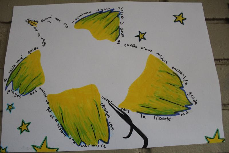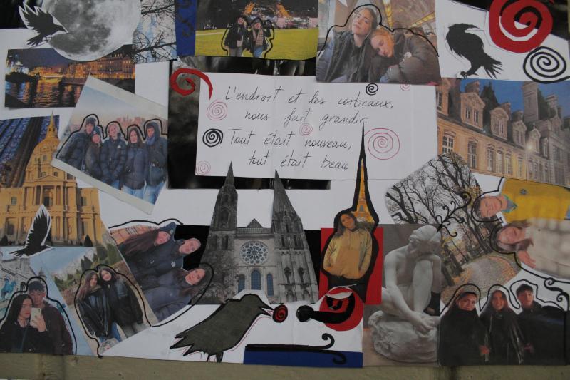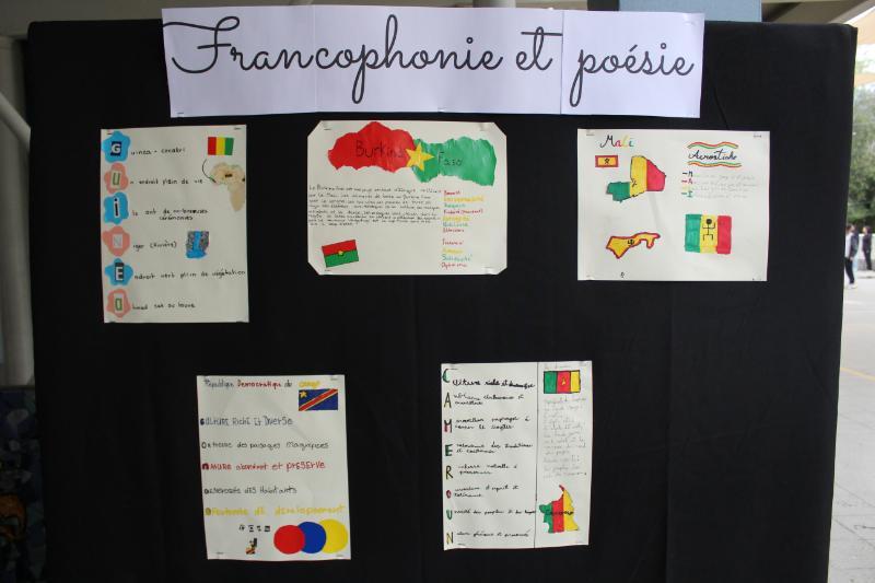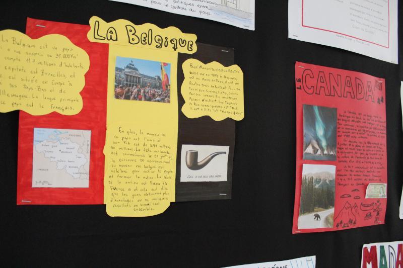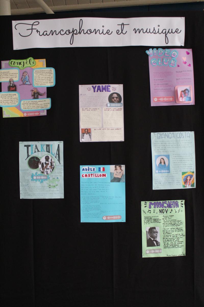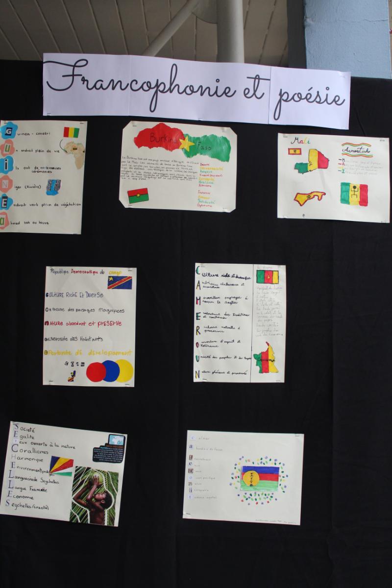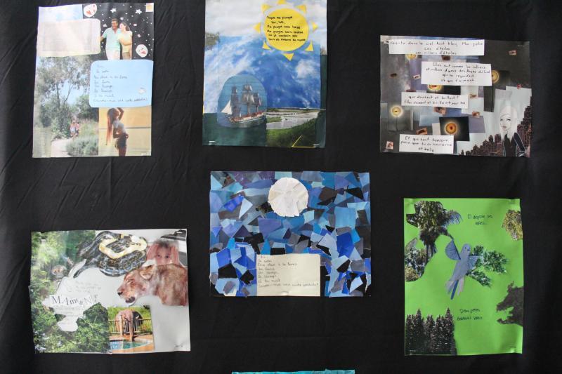 En cuanto al ciclo de Media, los cursos desde 7º Básico a 4ºMedio trabajaron poemas de la literatura francófona presentando interpretaciones visuales como caligramas. También investigaron sobre países de habla francesa en la revista Bilan du Monde 2023.